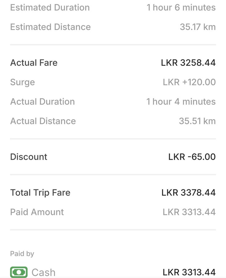 - Cab Colombo to Airport (35km): LKR 3300 (~INR 965).